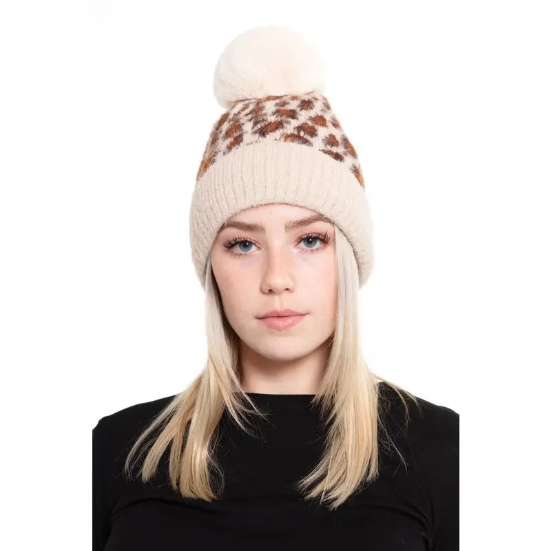 Experience the perfect blend of comfort and style with the Leopard Pom Fuzzy Beanie by ANB Fashion. Crafted from a 50% acrylic and 50% nylon blend, this women's beanie guarantees warmth and durability. It stands out with its unique leopard pom design, adding a touch of fun to your winter wardrobe.