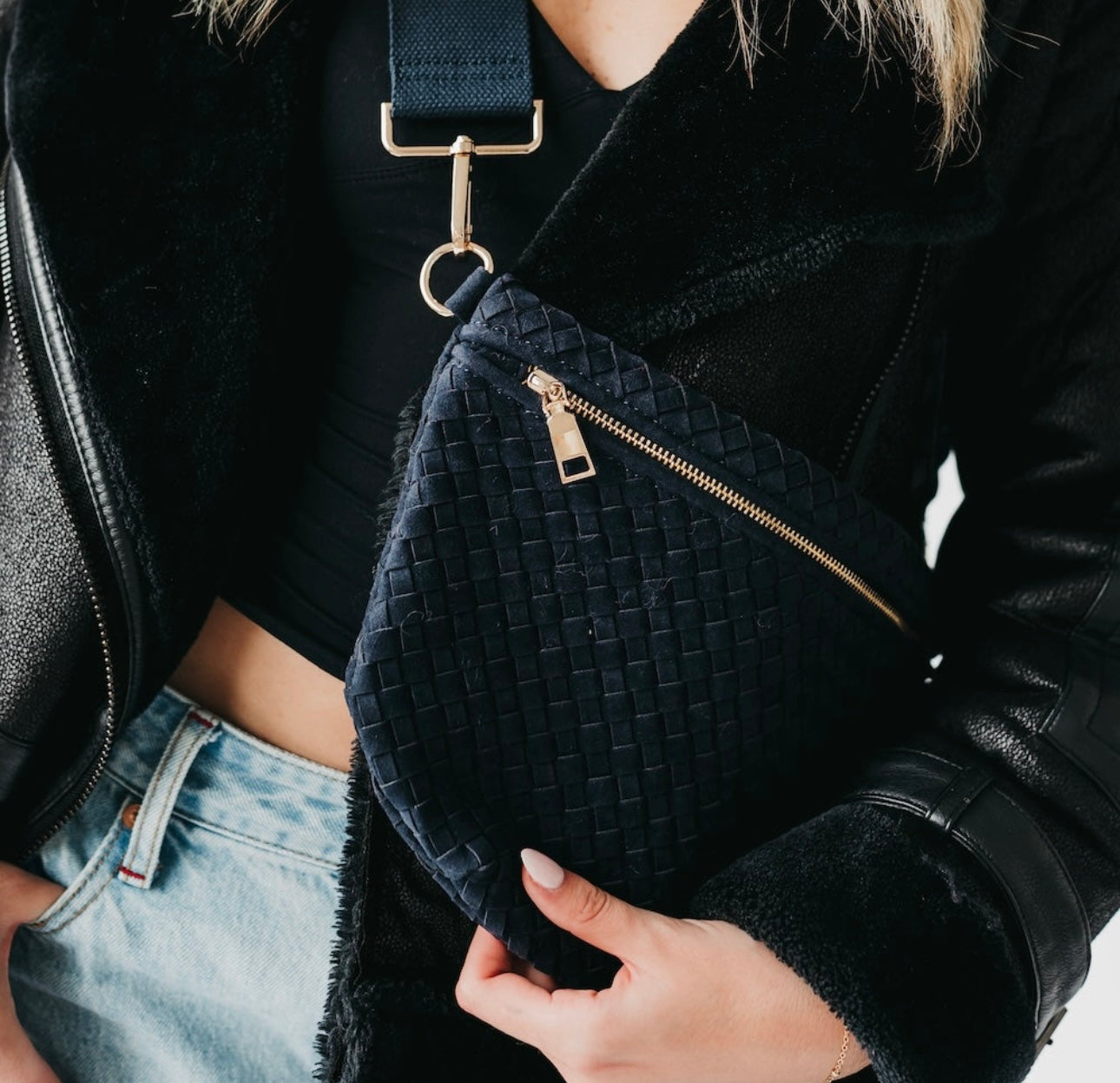 The Suede Westlyn Woven Bum Bag brings a playful twist to your everyday style with its soft suede feel and eye-catching woven pattern. It’s the perfect hands-free companion for your adventures, keeping your essentials close and your look effortlessly fun.