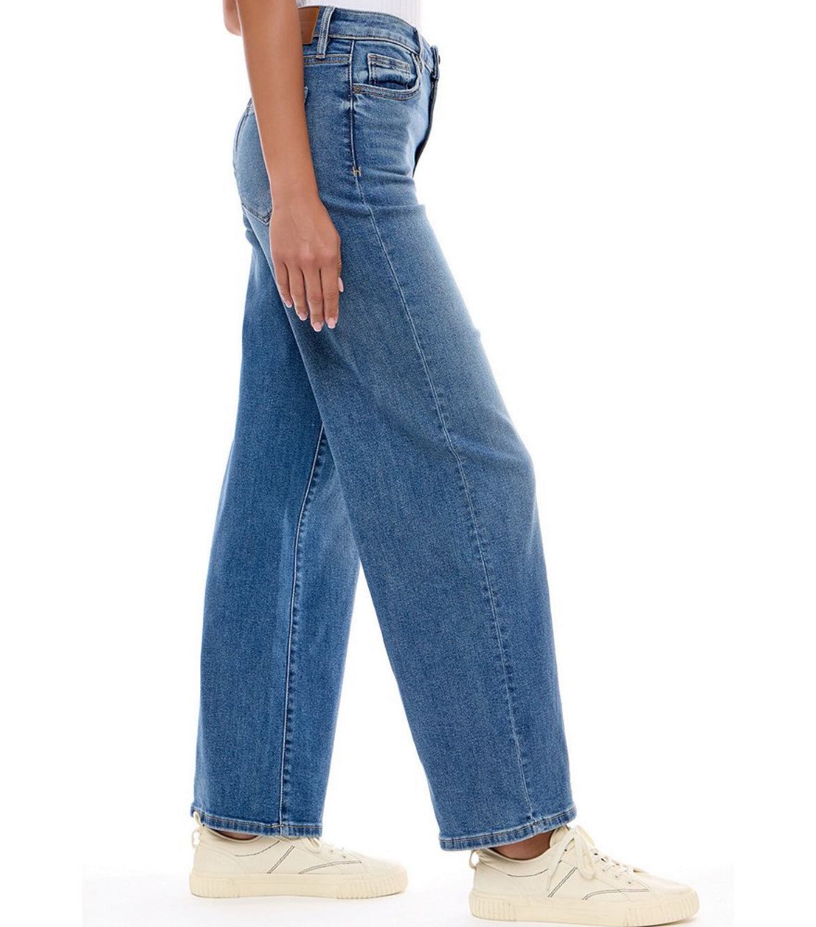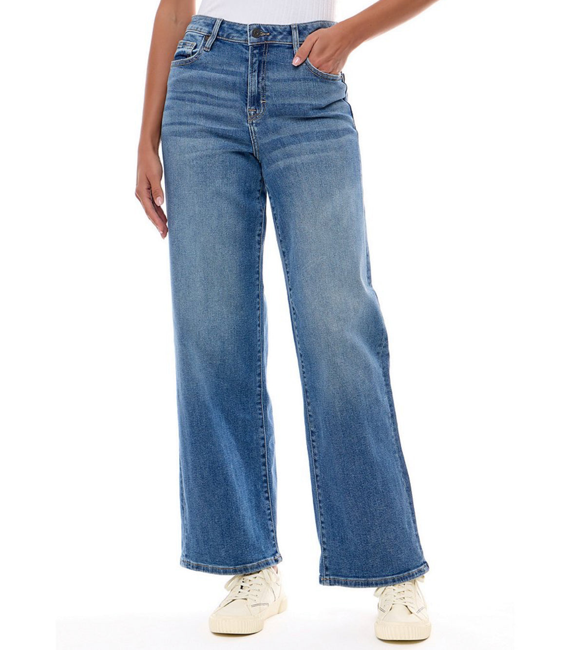Channel vintage-inspired vibes with these high-waist jeans fashioned with a faded wash and cool wide-leg silhouette. Fabric Content: 93% Cotton, 6% Polyester, 1% Spandex