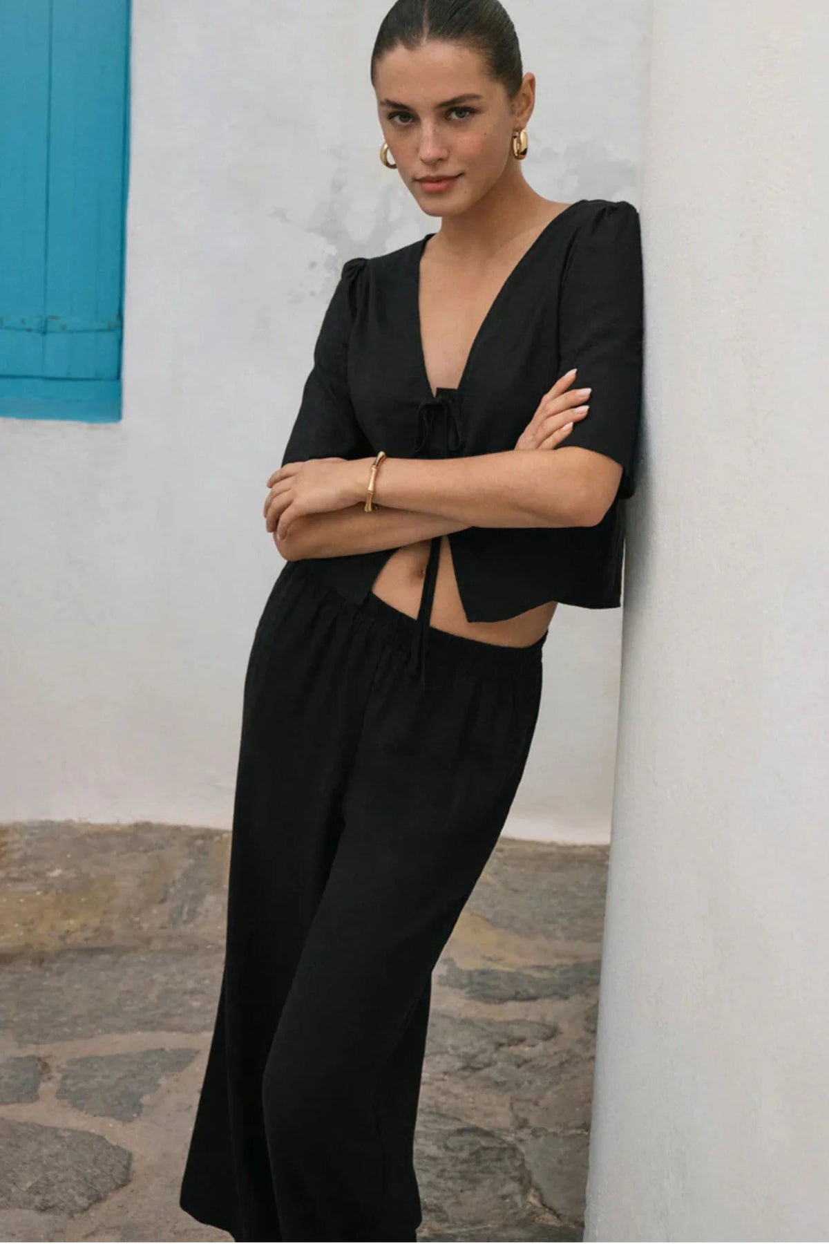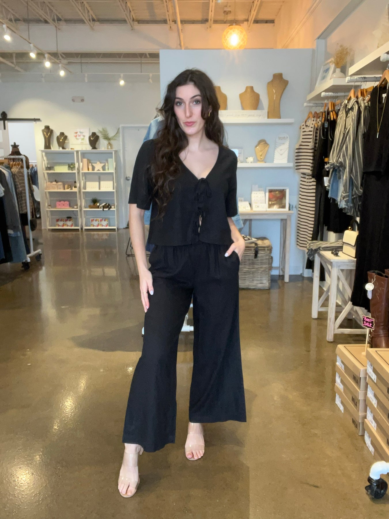 Detailed with an elastic waistband, side seam pockets, and washed linen blend fabric, these high-rise pants will be a forever staple in your wardrobe. Make it a set with the La Bella Linen Top. Fabric Content: 55% Linen, 45% Rayon