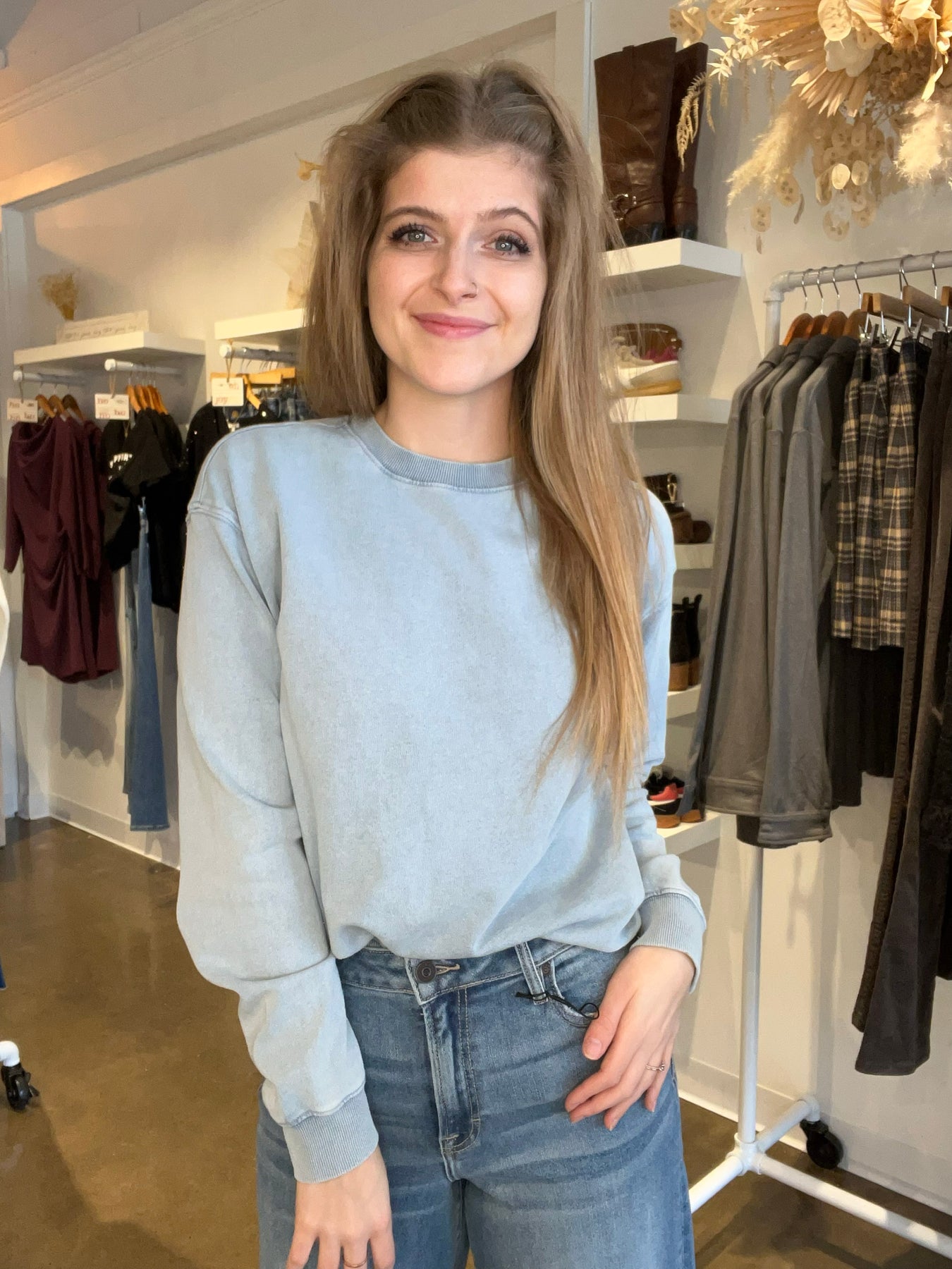 Relaxed and cozy, this crewneck sweatshirt feels like an instant favorite. The knit denim fabric offers that classic denim look with the comfort of a well-worn sweatshirt. Its mineral wash finish adds a soft, broken-in texture that’s easy to love. Fabric Content: 85% Cotton, 15% Polyester