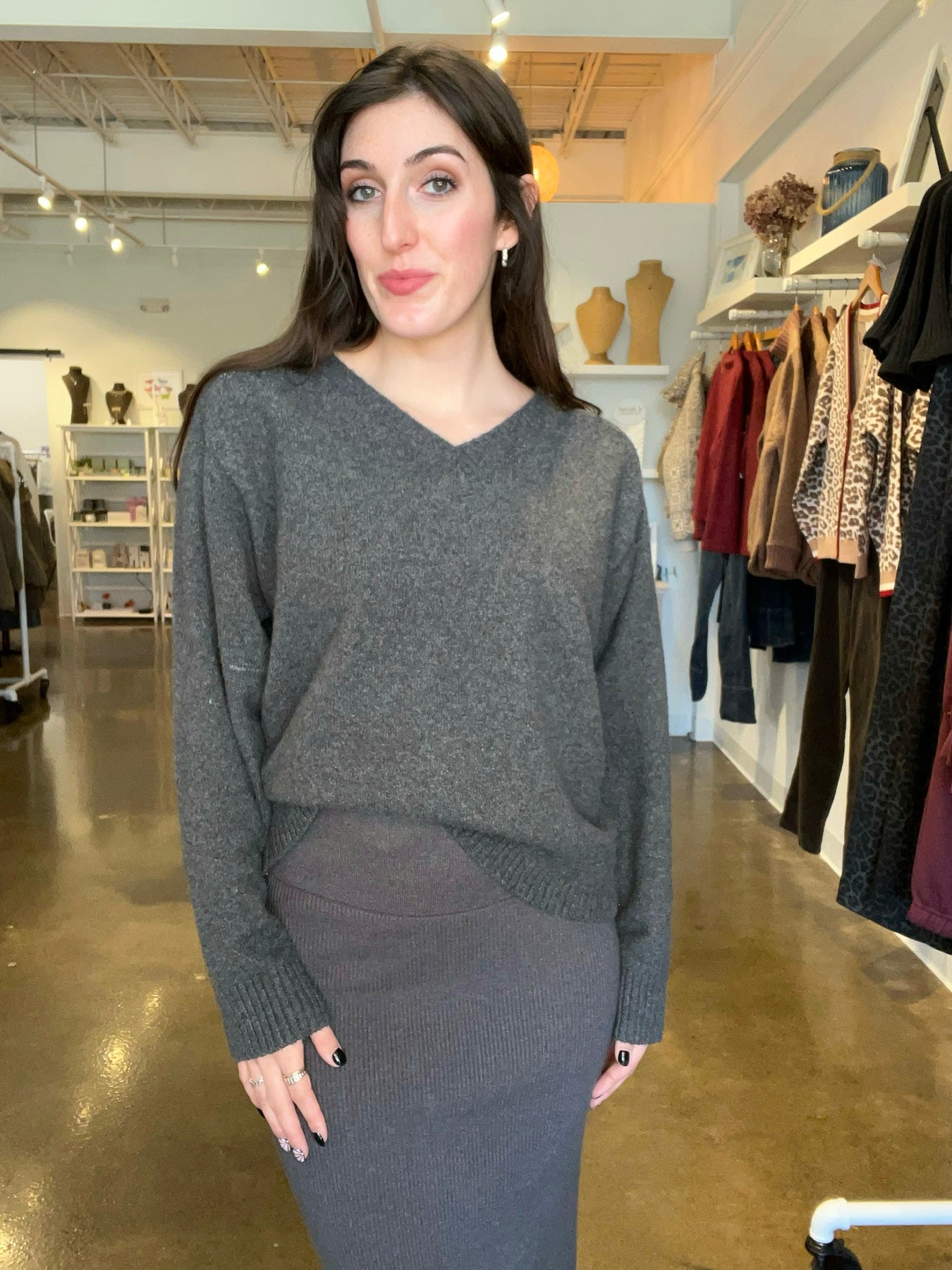 Effortlessly cool and endlessly cozy, the Eloise Sweater from Z Supply is your new go-to layer for laid-back sophistication. Crafted in a soft, mid-weight knit, this V-neck pullover delivers a relaxed fit that drapes beautifully over any outfit. The charcoal heather hue adds depth and versatility, pairing perfectly with everything from denim to skirts.
