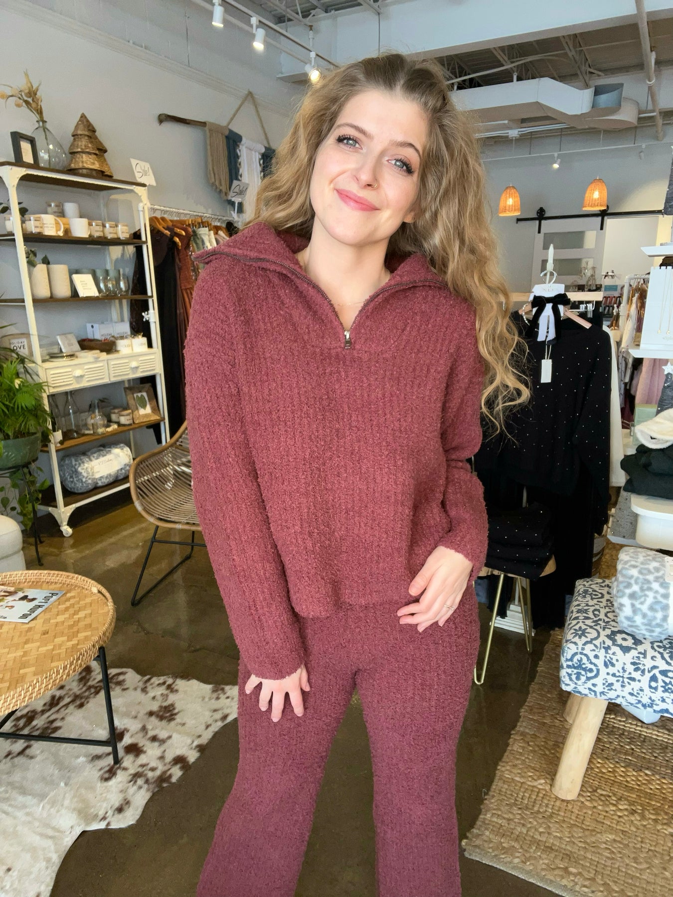 The Mandie Sweater offers a soft, textured fuzzy fabric with a roomy body and slight cropped fit for effortless comfort. Featuring a half-zip and long sleeves, it’s perfect for cozy layering. Pair it with the matching Kael Pant for a refined, coordinated look. Fabric Content: 100% Polyester